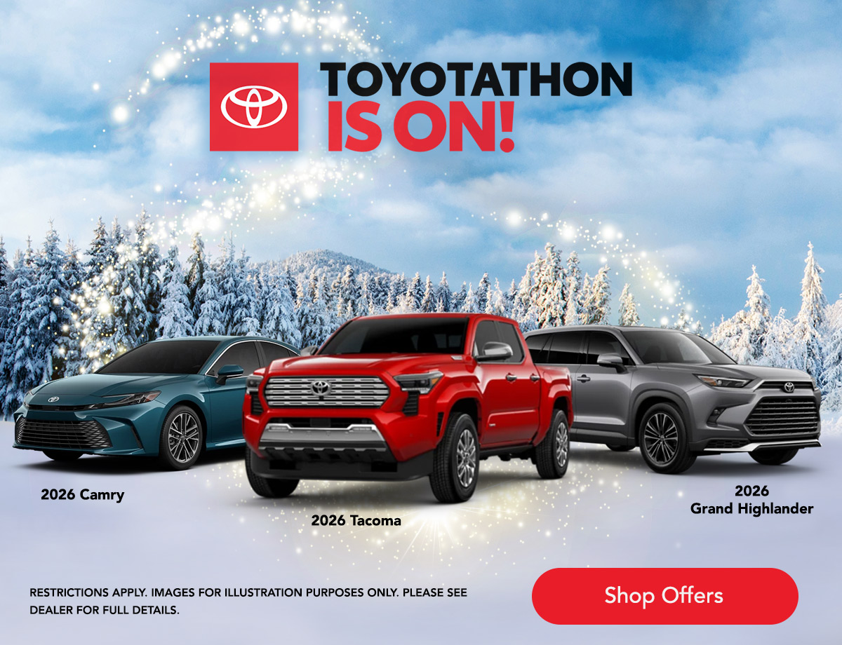 As a valued customer, we know your driving needs can change — and this is your moment to take advantage. Our Buy Back Program lets you get top value for your current vehicle while our Toyotathon offers give you unbeatable pricing on select new Toyota models.